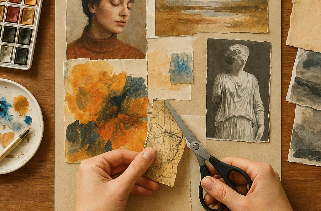 Warto też przygotować stół do pracy chroniony papierem lub folią oraz pojemniki na drobne elementy. Jeżeli zabierasz się za kolaże w grupie, przygotuj dodatkowe materiały demo — niektóre osoby dopiero podczas pracy odkrywają swoje ulubione materiały.