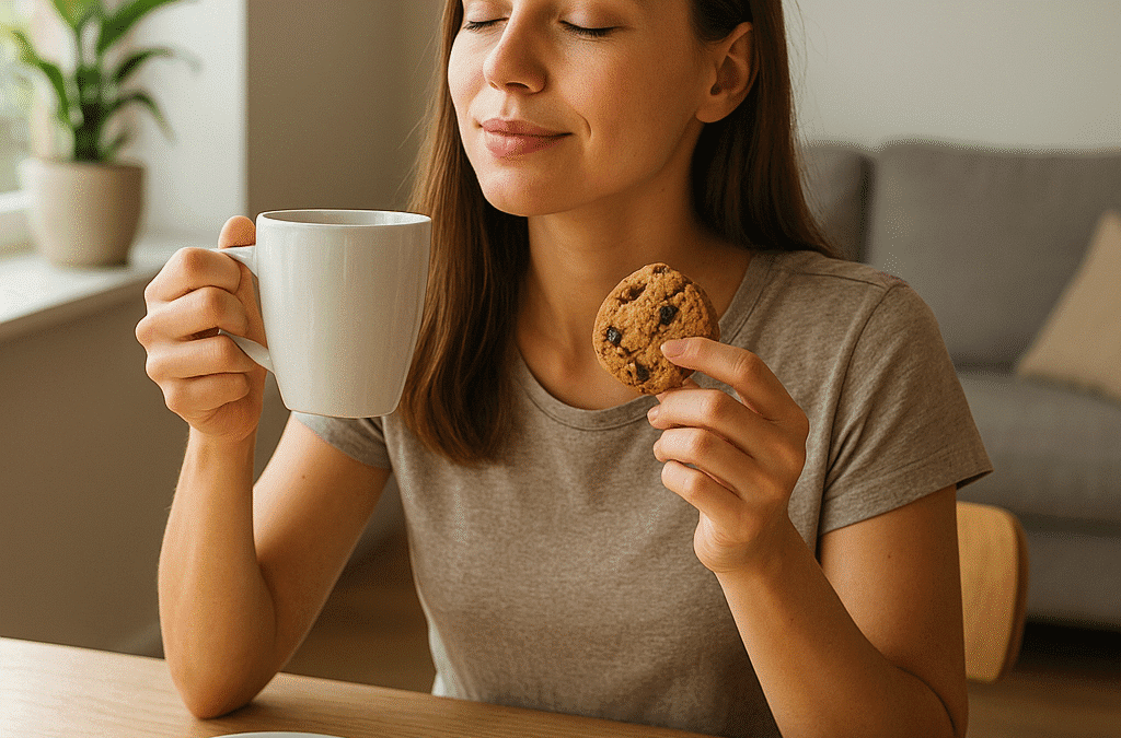 - Szybka kawa/herbata w ulubiony sposób — poświęć chwilę na delektowanie się smakiem zamiast pić w biegu.